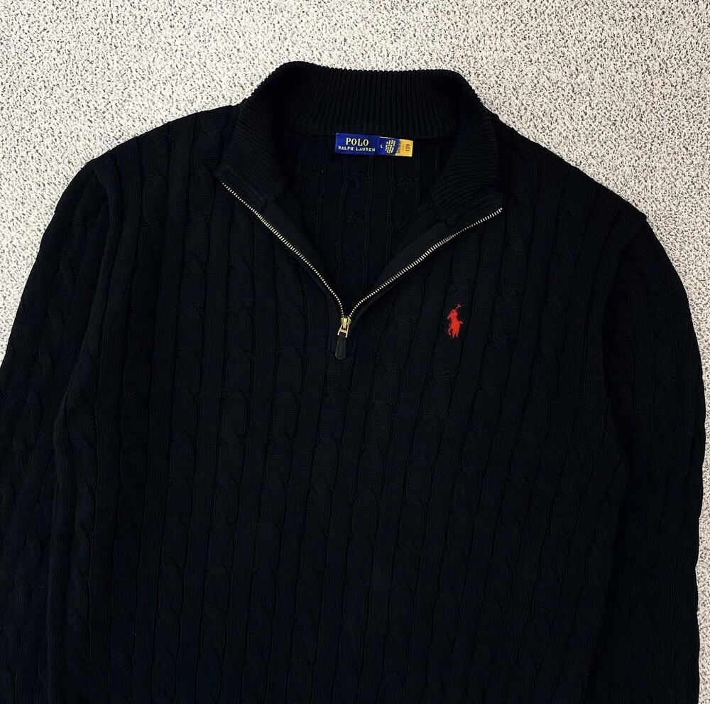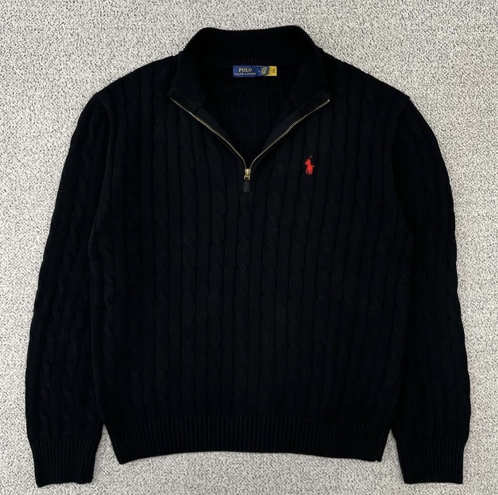 폴로 블랙 케이블 니트 반집업