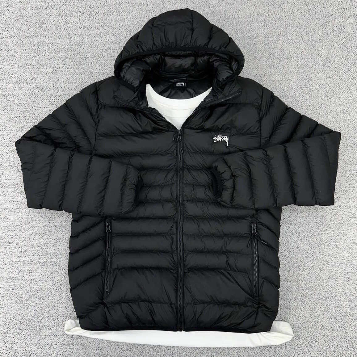 스투시 블랙 라이트 후드 경량패딩