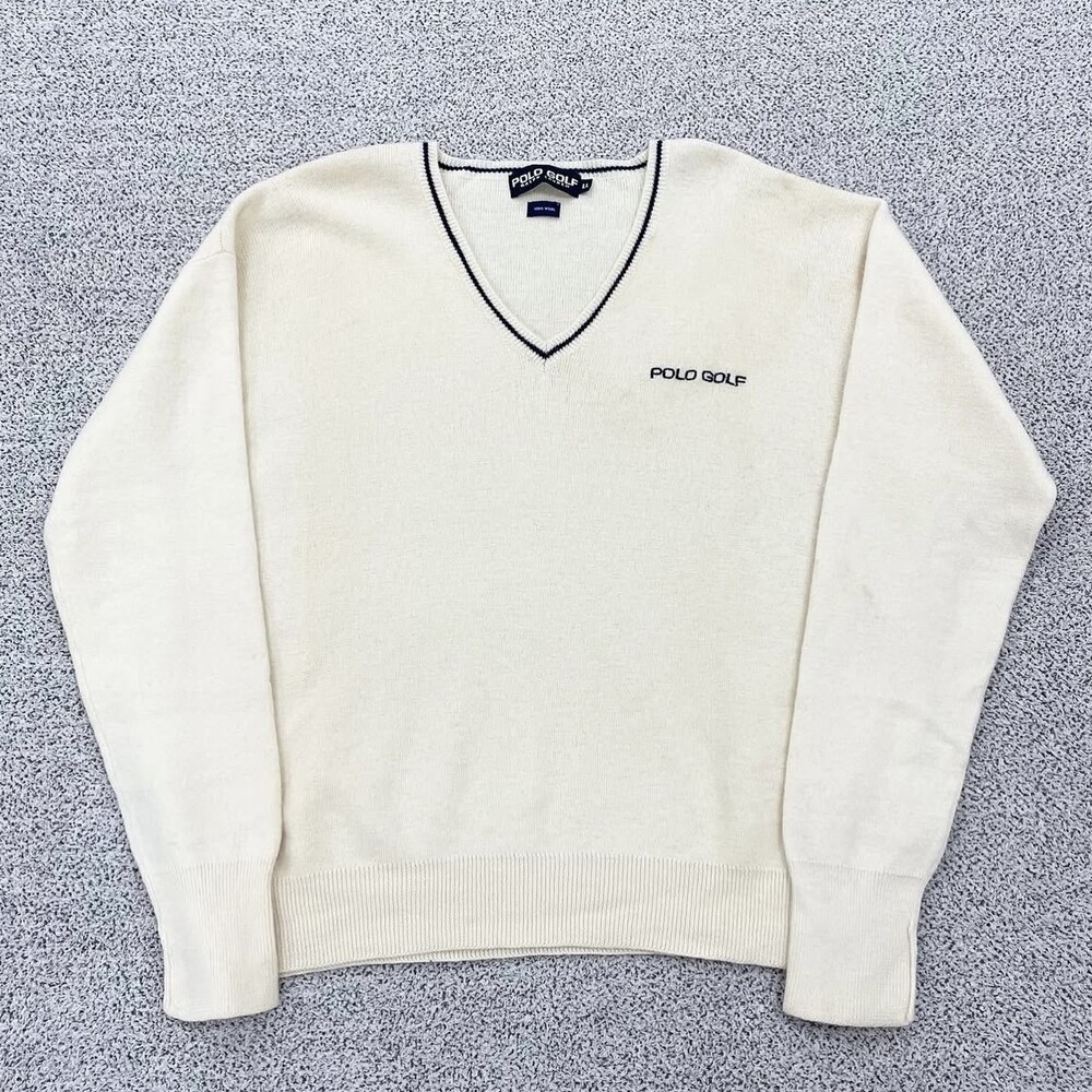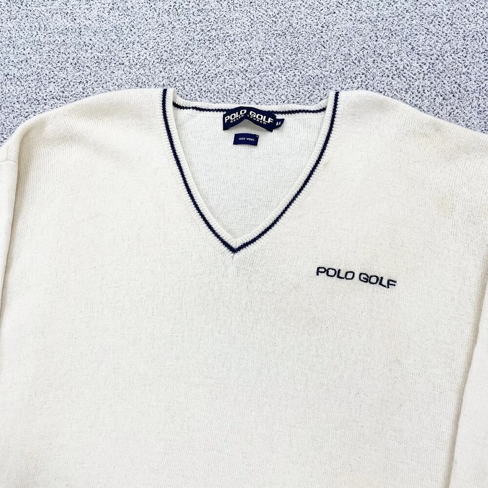 폴로 아이보리 골프 브이넥 니트