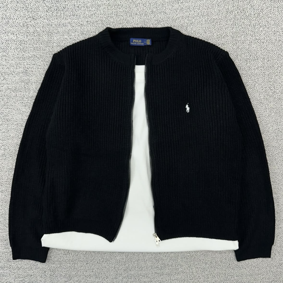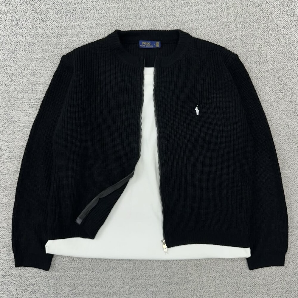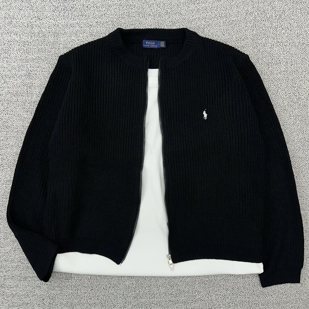 폴로 블랙 크롭 집업 가디건