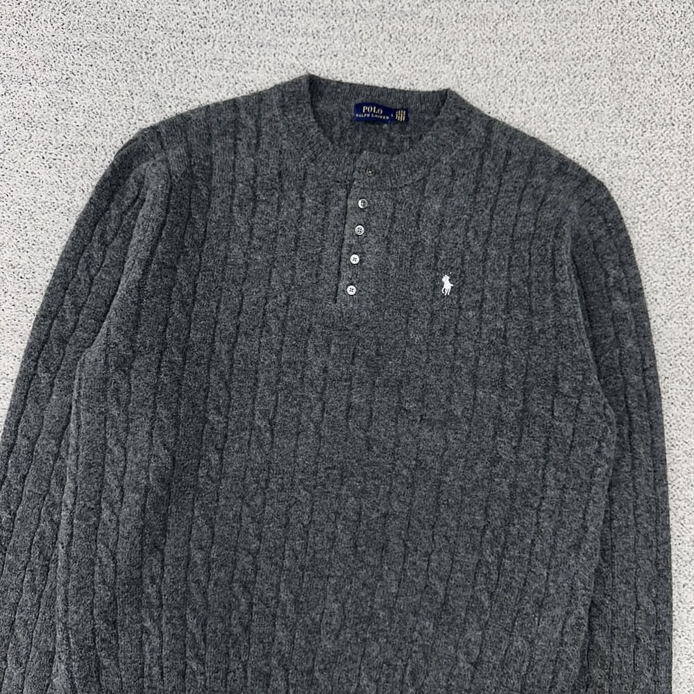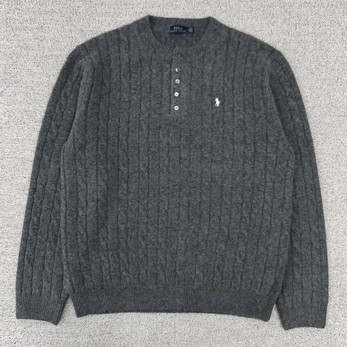 폴로 그레이 케이블 헨리넥 니트