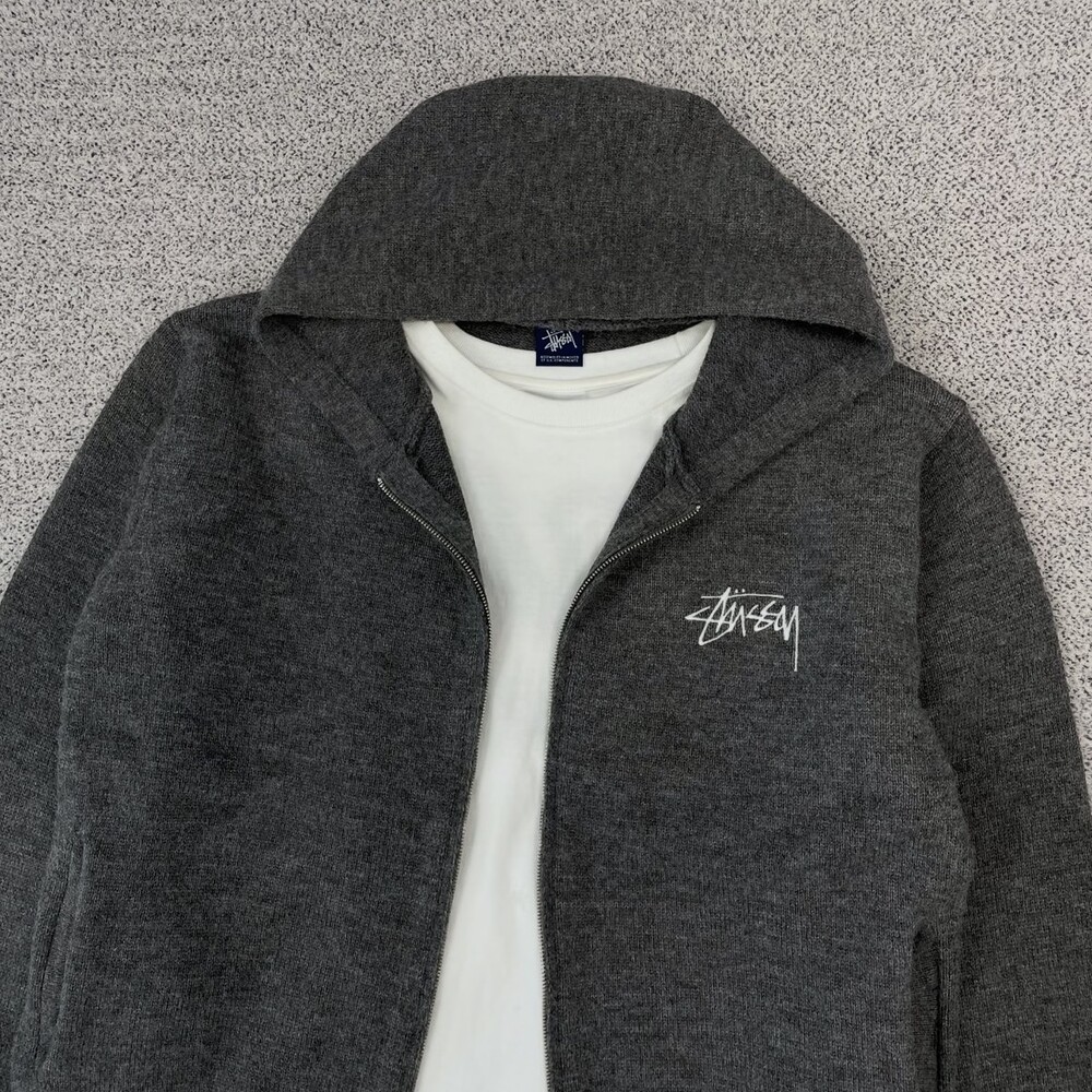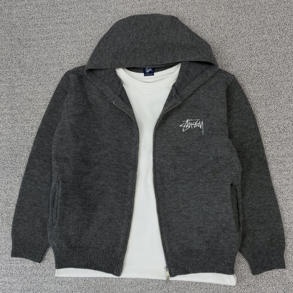 스투시 그레이 포켓 니트 후드집업