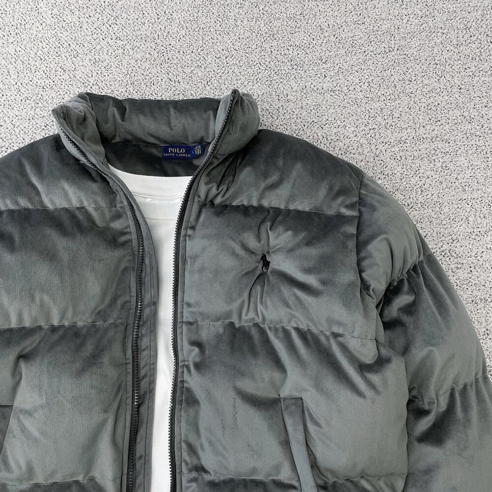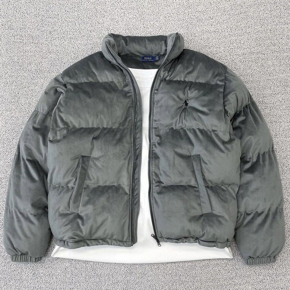폴로 그레이 벨벳 패딩