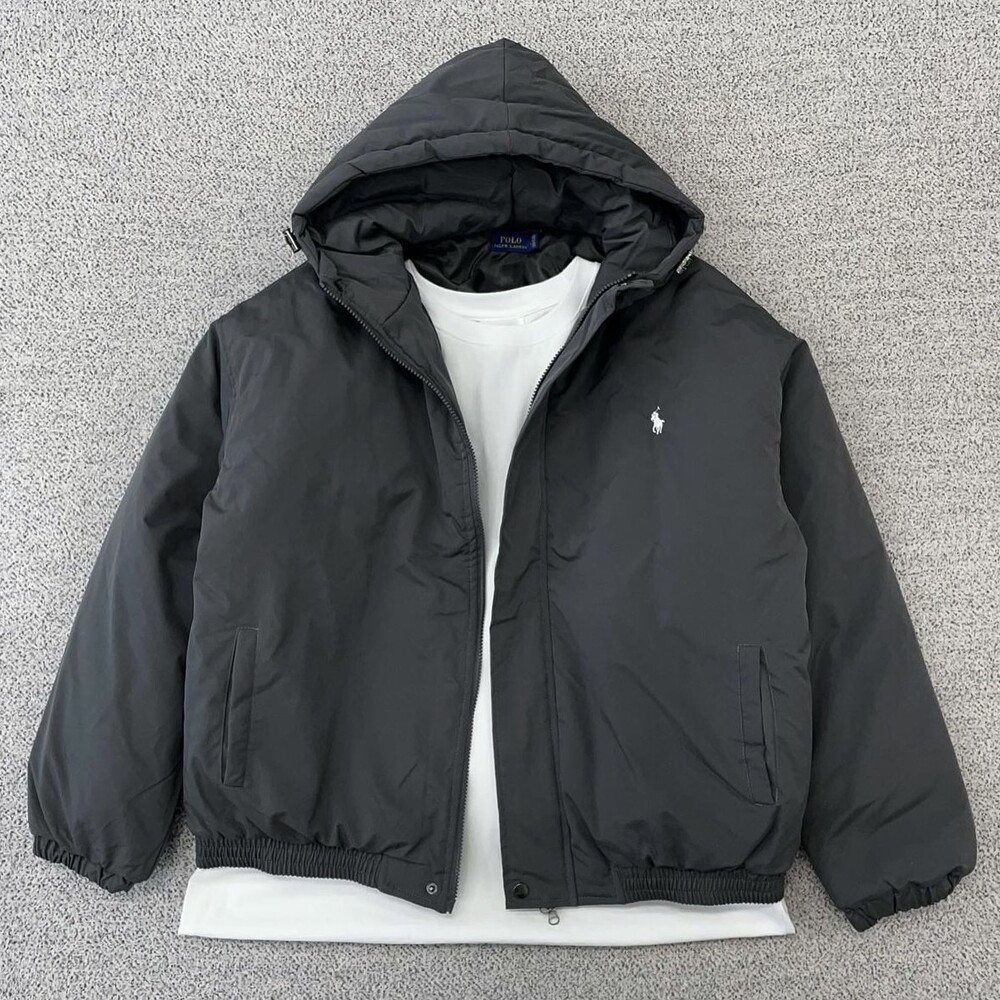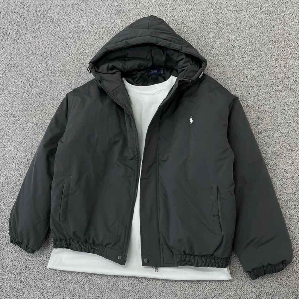 폴로 다크그레이 베이직 후드 패딩