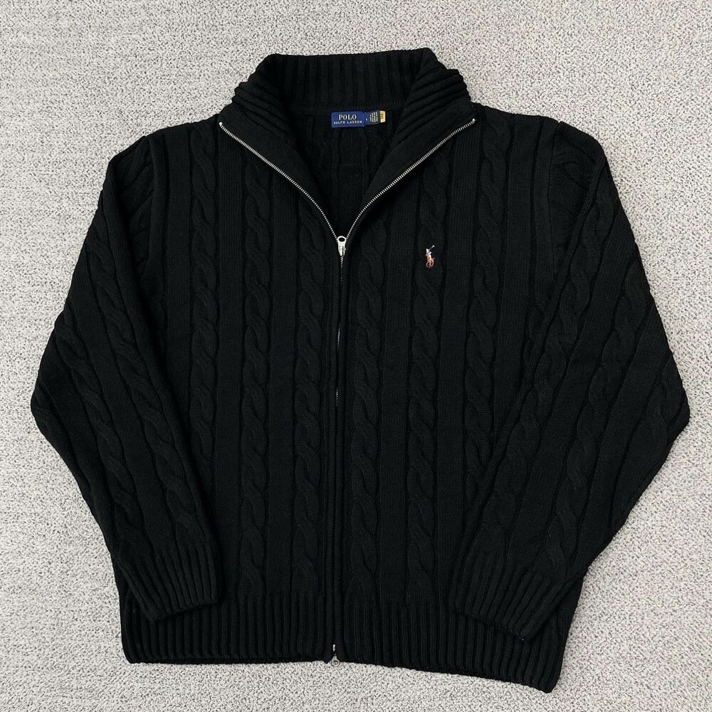 폴로 블랙 멀티포니 케이블 니트 풀집업