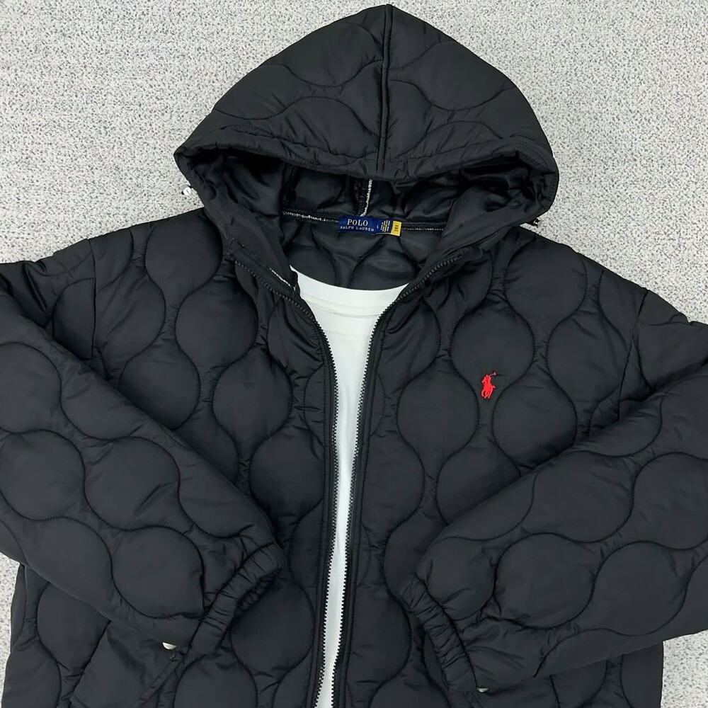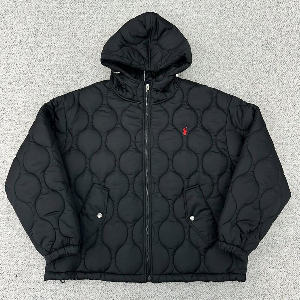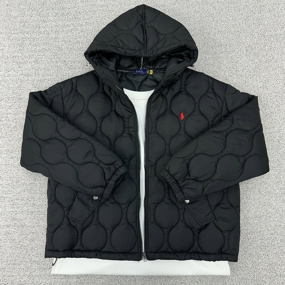 폴로 블랙 퀄팅 후드 패딩자켓
