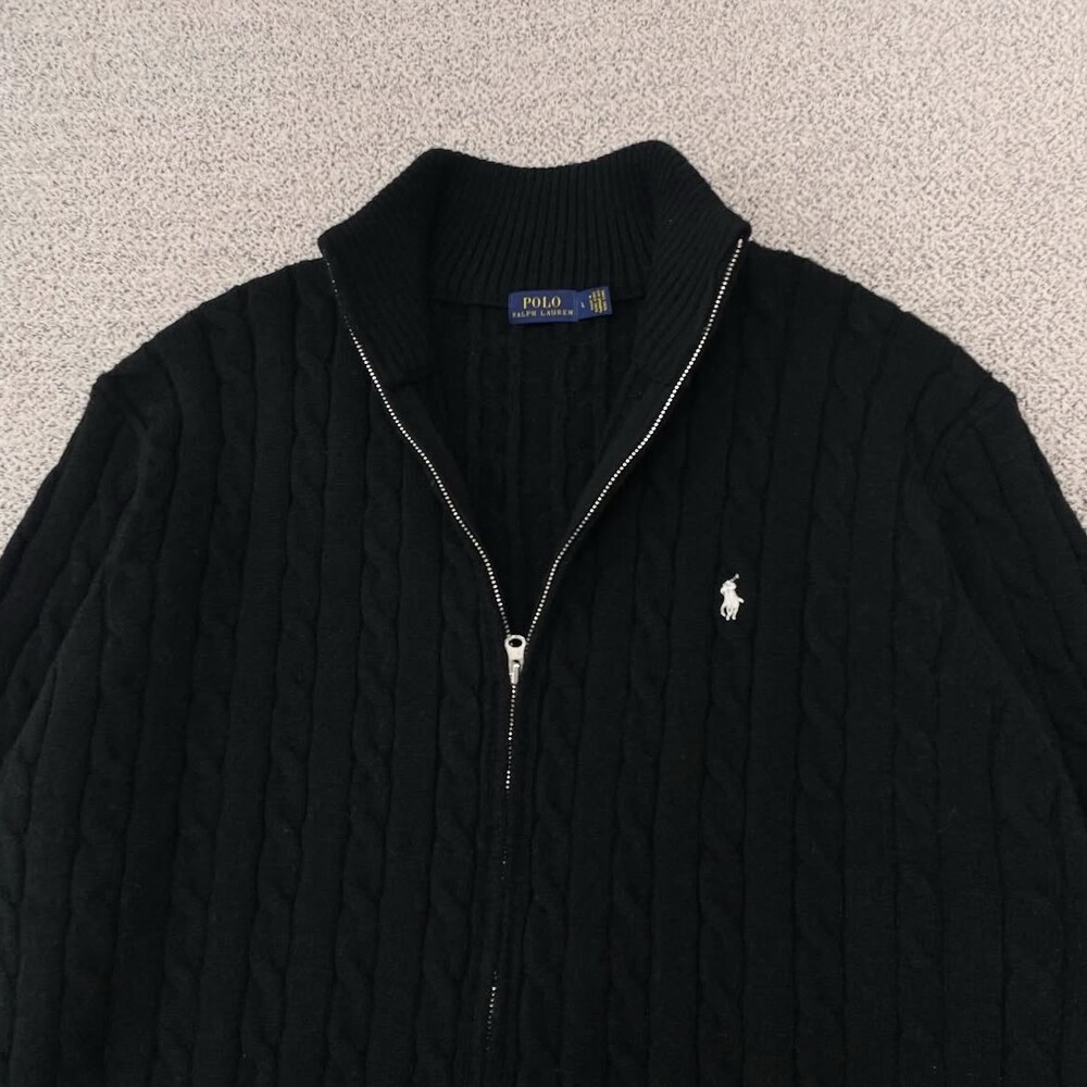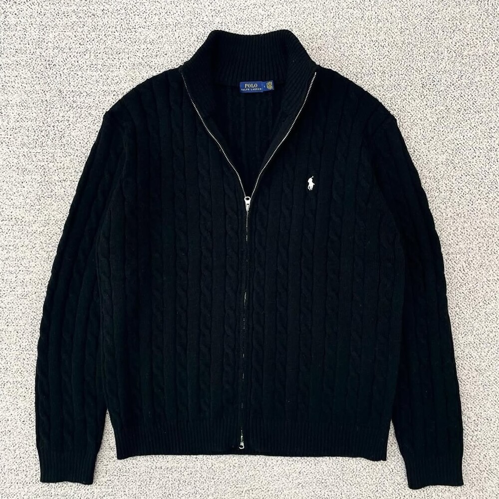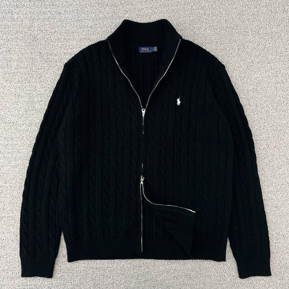 폴로 블랙 케이블 풀집업 니트