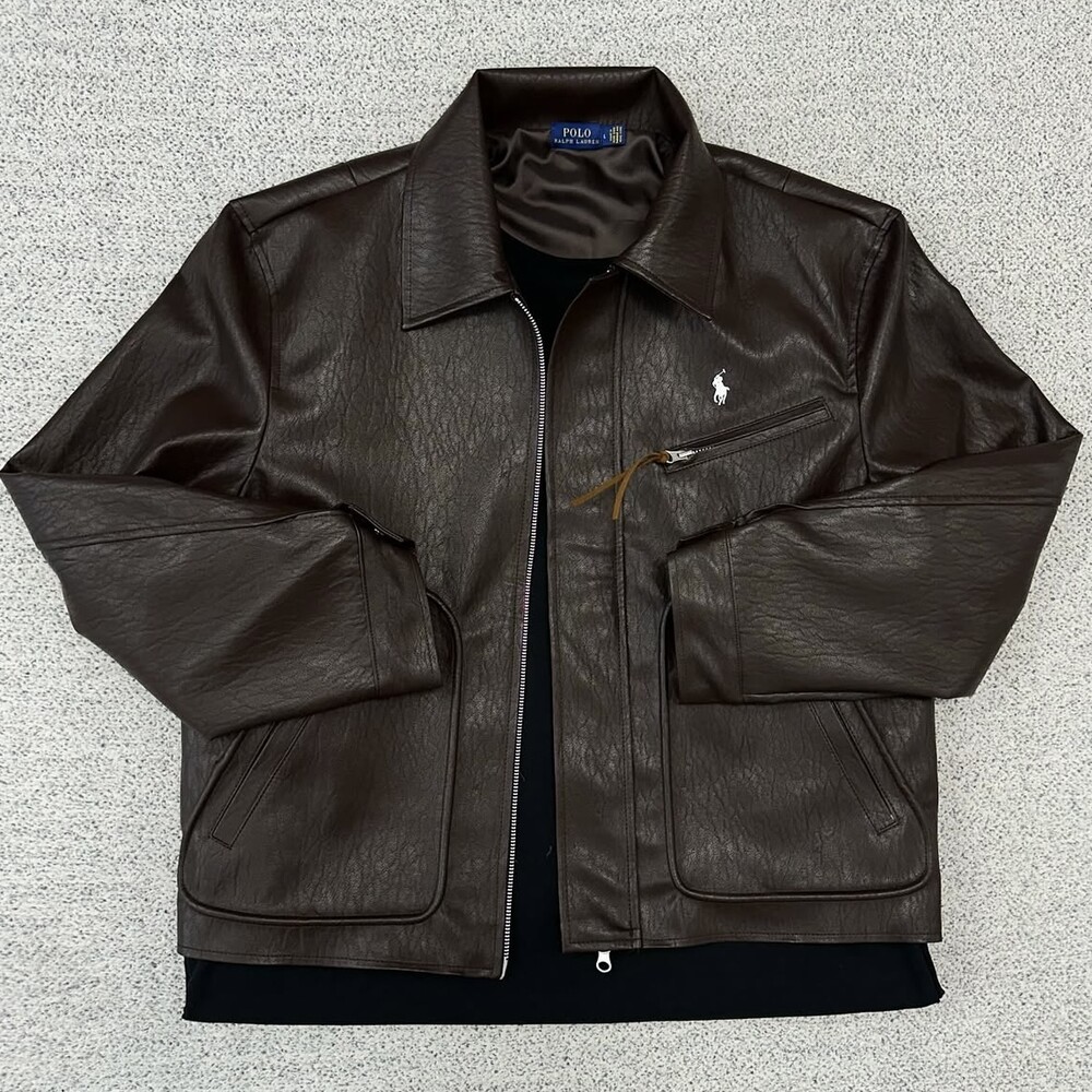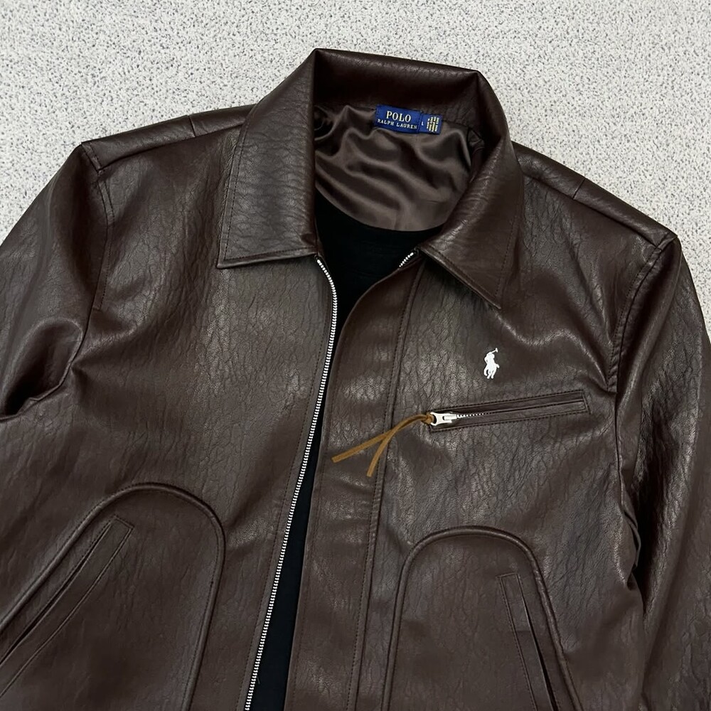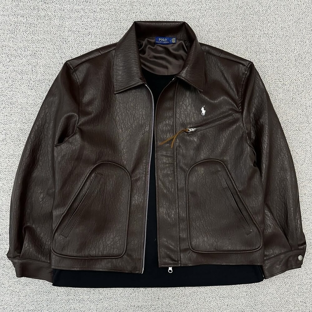 폴로 브라운 카라 레더 자켓