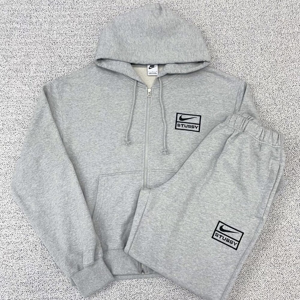 스투시X나이키 그레이 워시드 후드집업 셋업