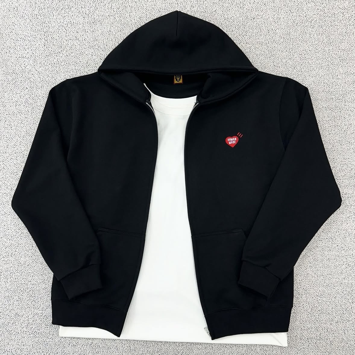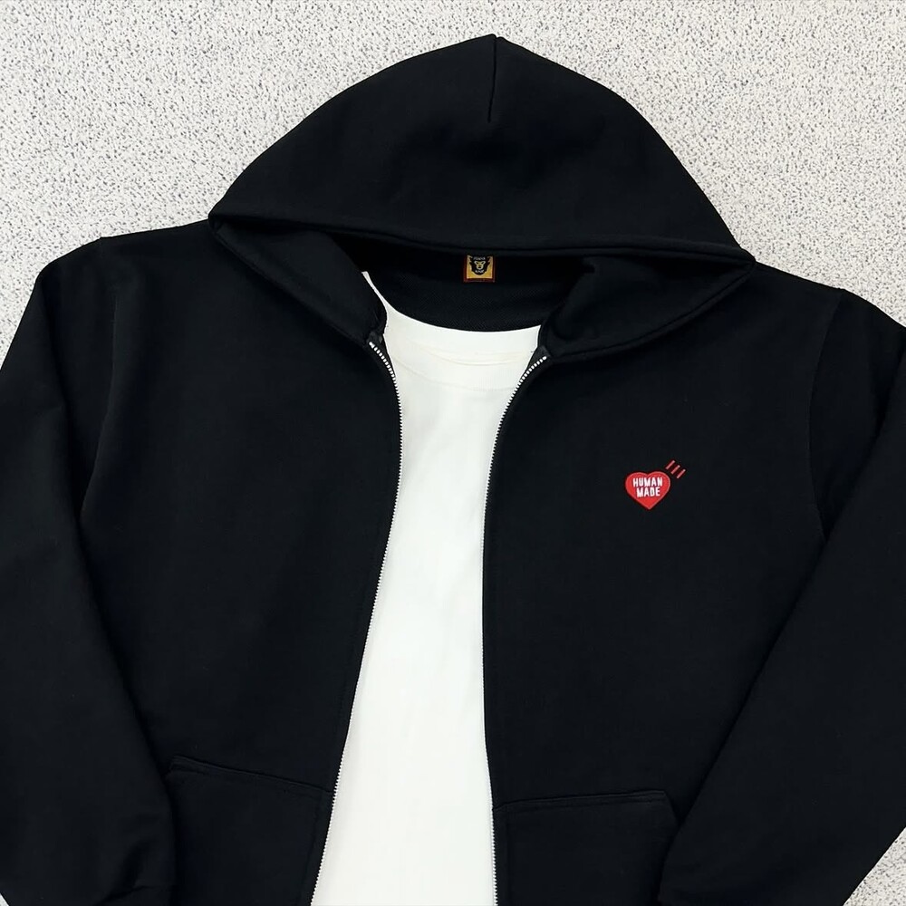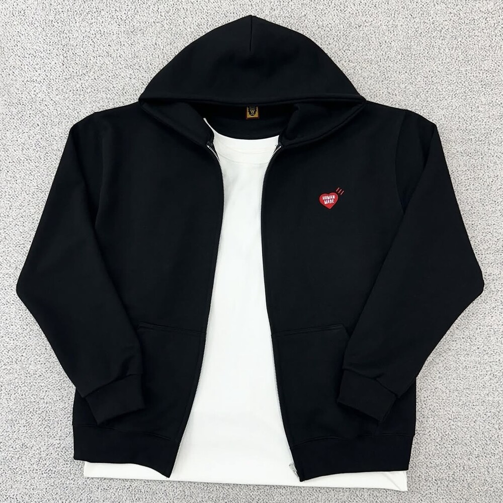 휴먼메이드 하트로고 블랙 후드집업