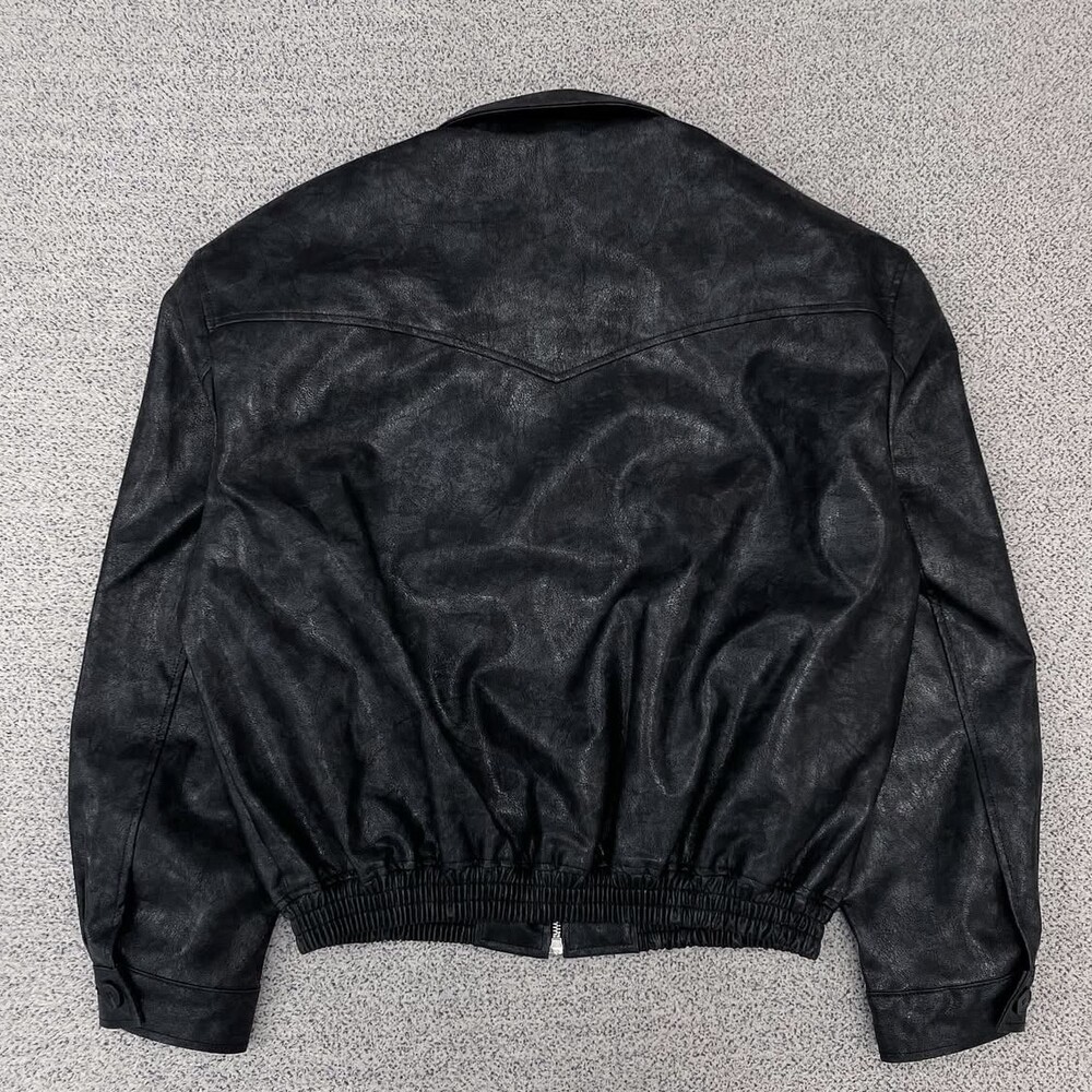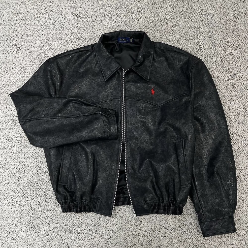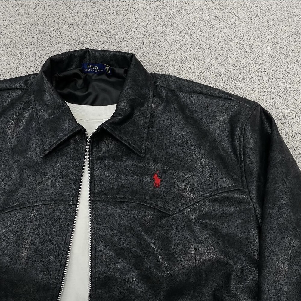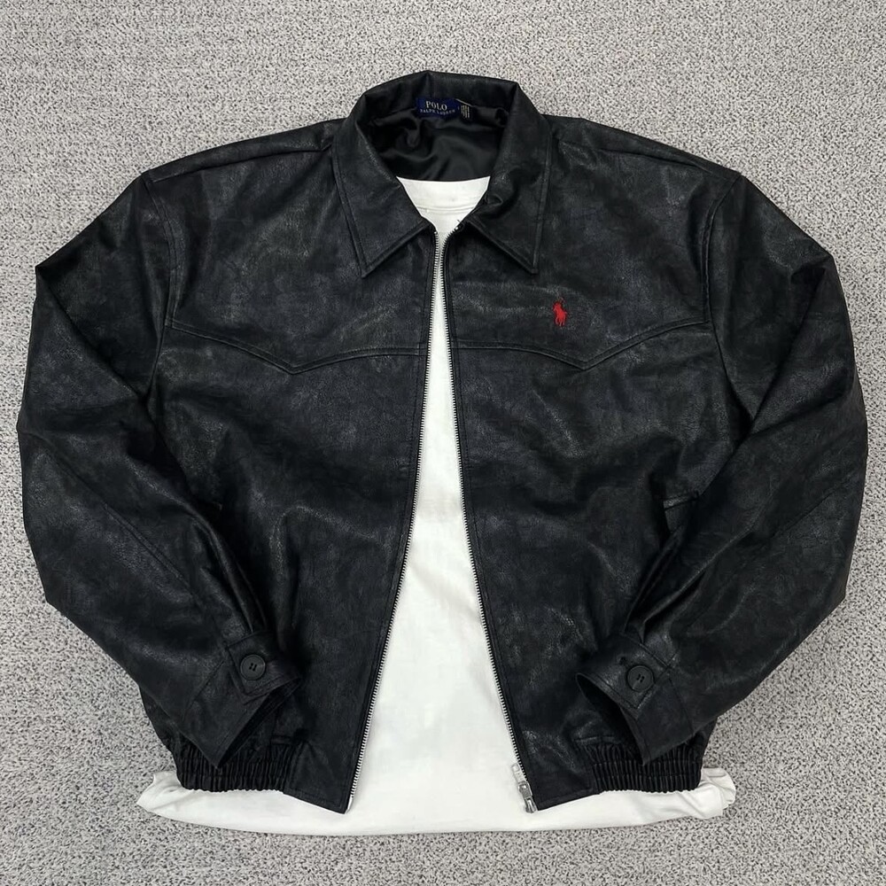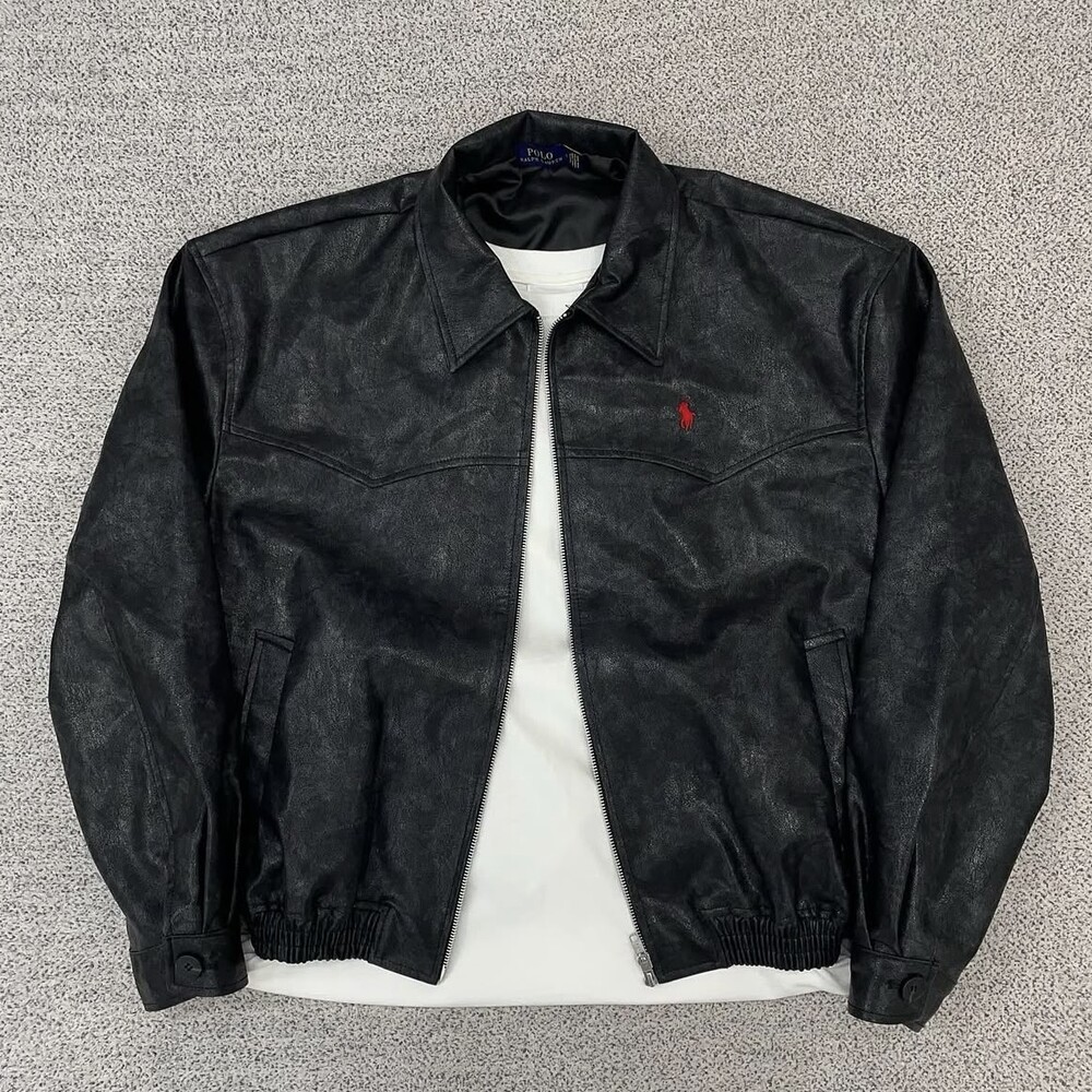 폴로 블랙 카라 크롭 레더자켓