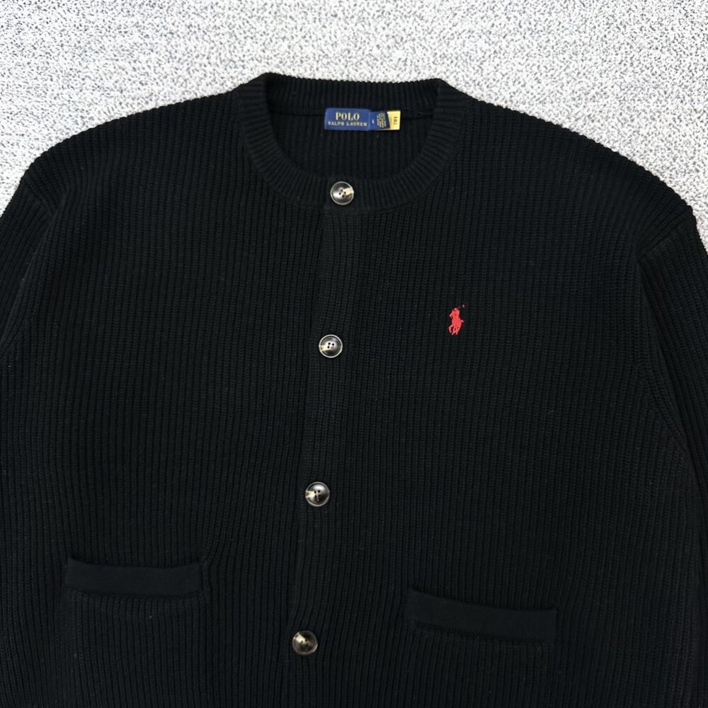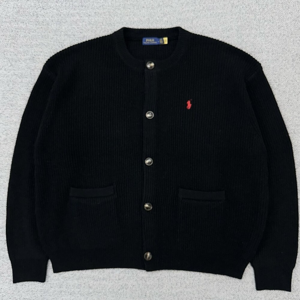 폴로 블랙 헤비 포켓 라운드 가디건