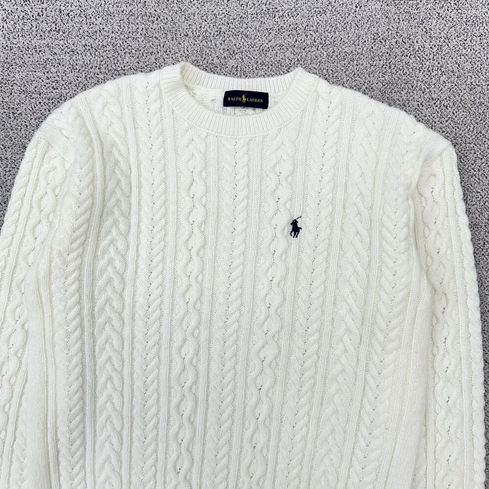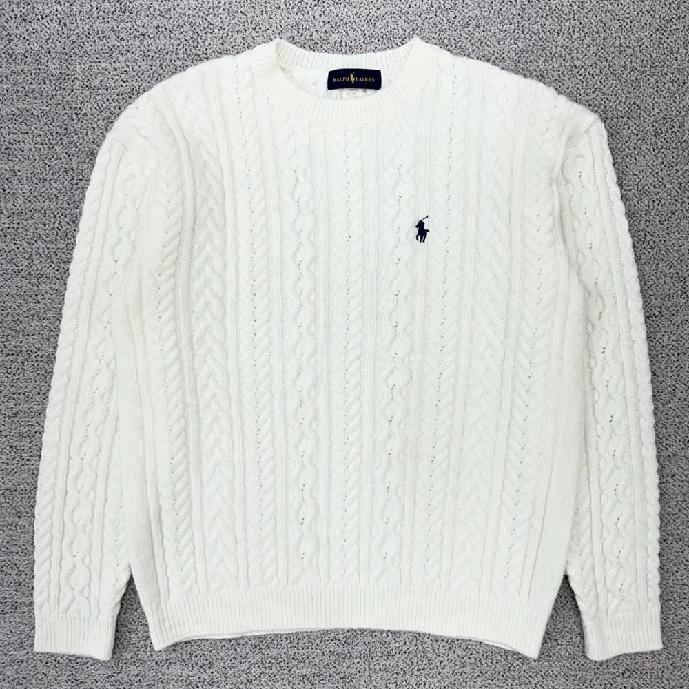 폴로 화이트 케이블 헤비 니트