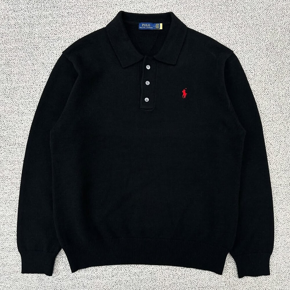 폴로 블랙 버튼 카라 니트