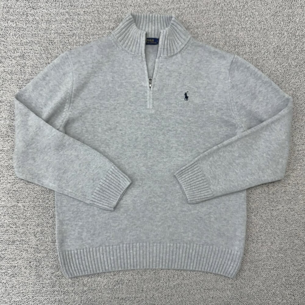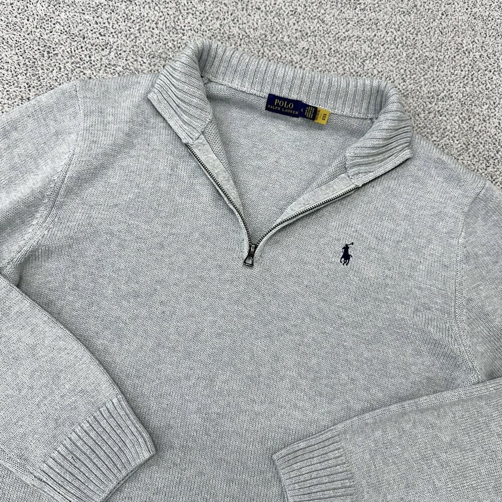 폴로 피마코튼 그레이 반집업 니트