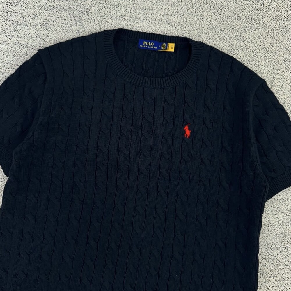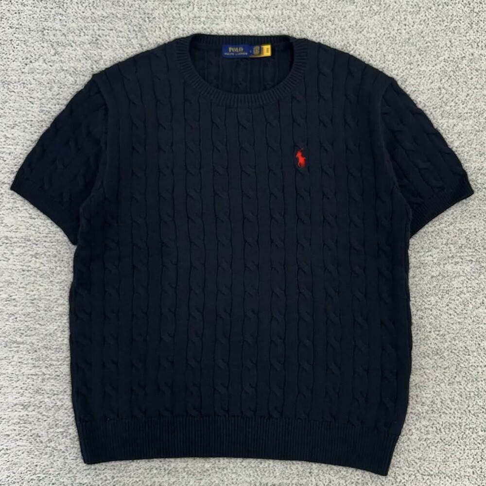 폴로 네이비 케이블 라운드 반팔니트