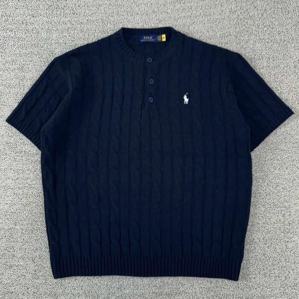 폴로 네이비 헨리넥 케이블 반팔니트