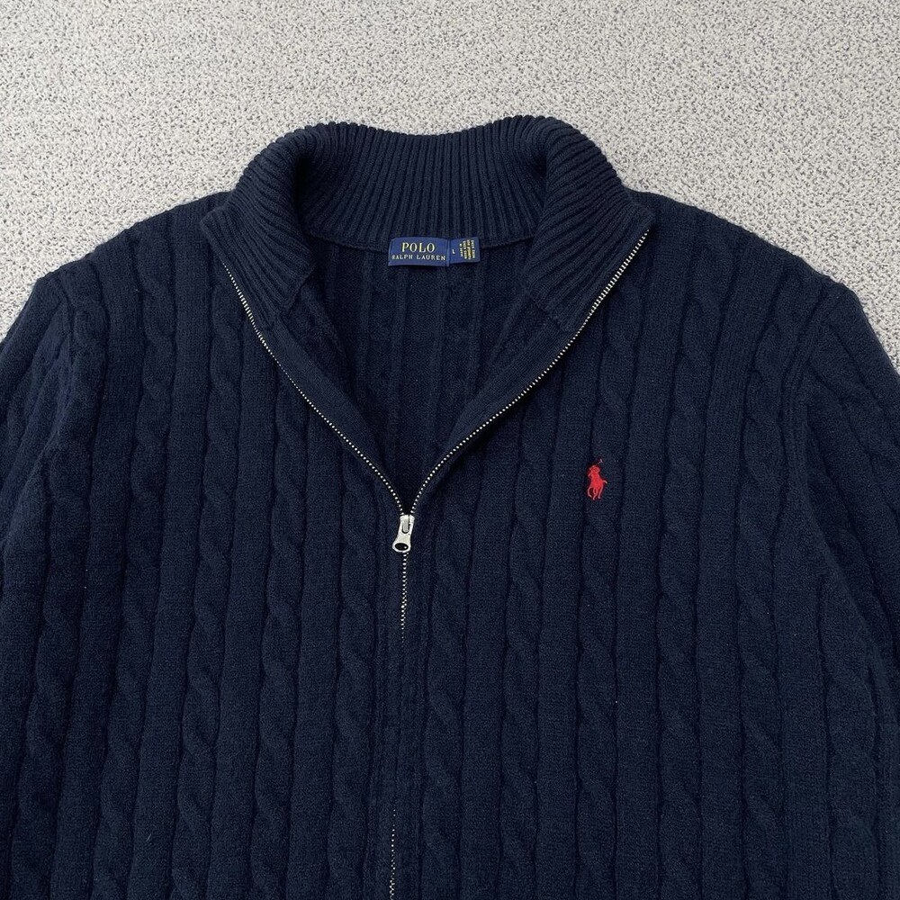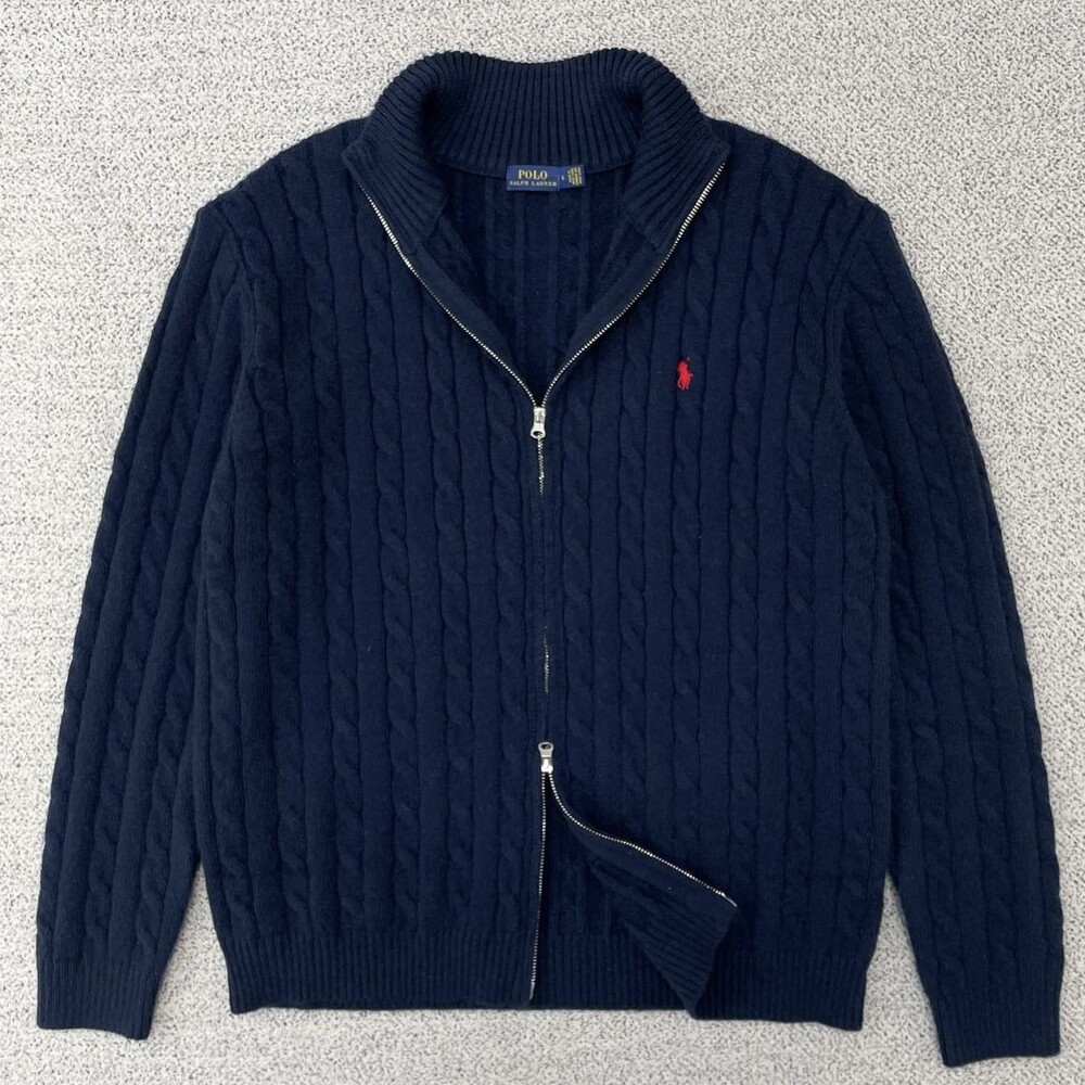 폴로 네이비 꽈배기 풀집업 니트