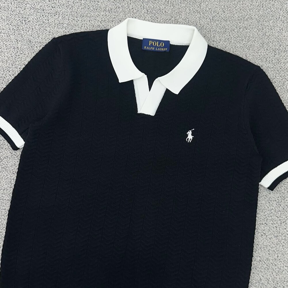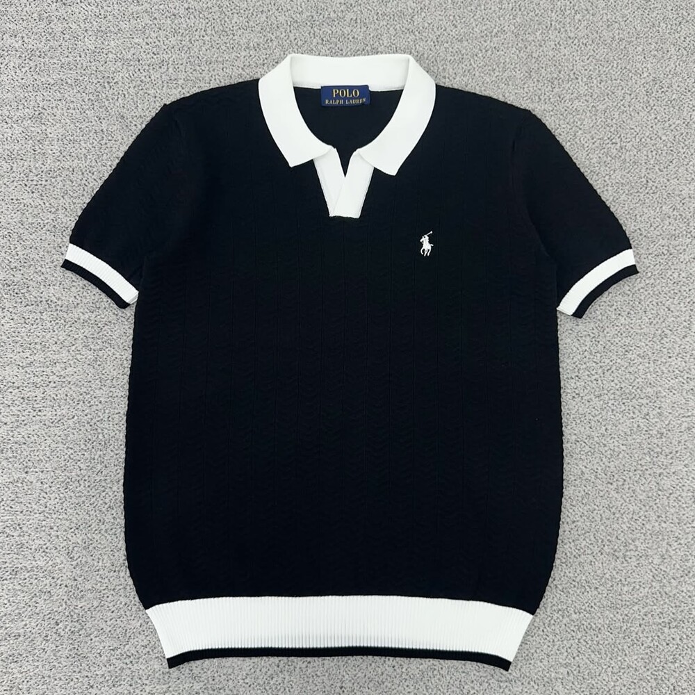 폴로 블랙 배색 오픈카라 반팔니트