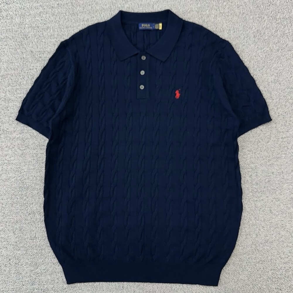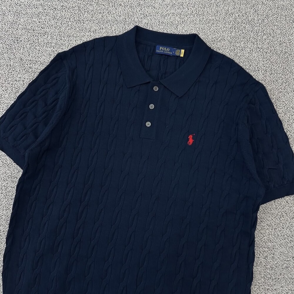 폴로 네이비 케이블 린넨 카라 반팔니트
