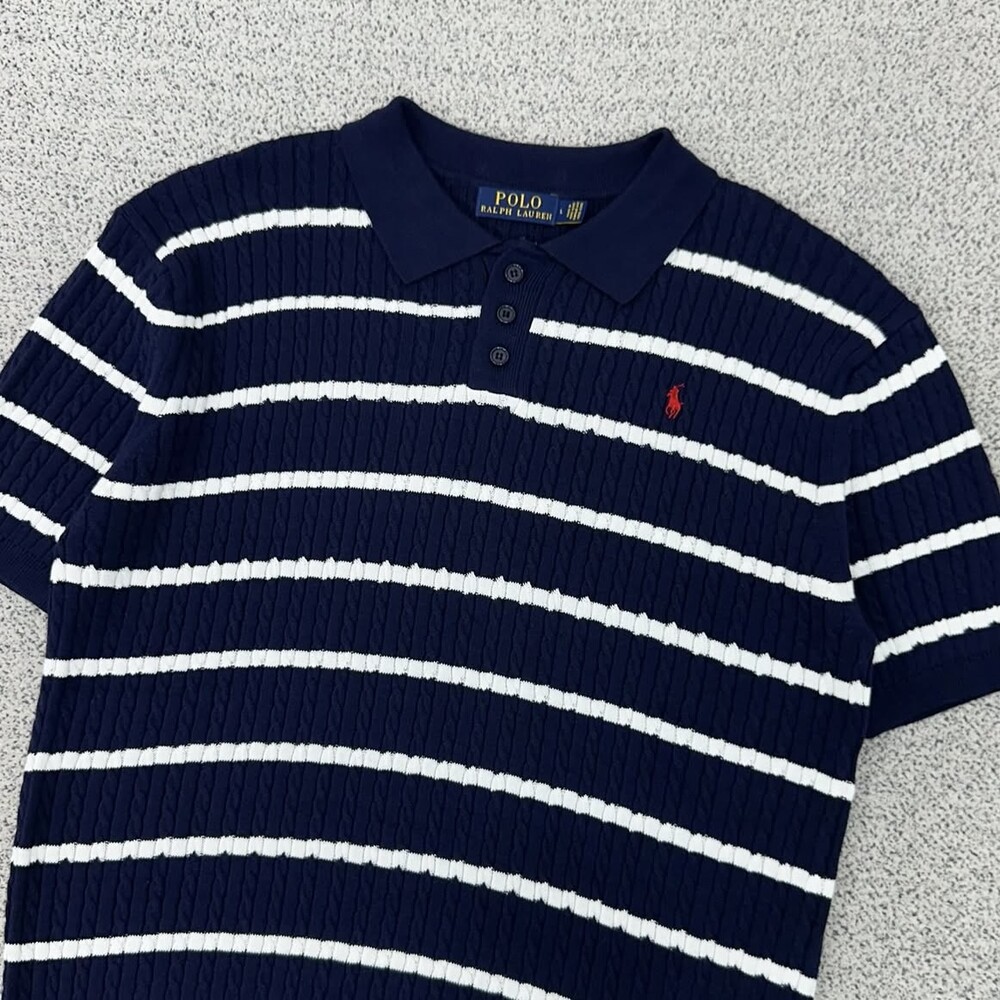 폴로 네이비 케이블 단가라 카라 반팔니트
