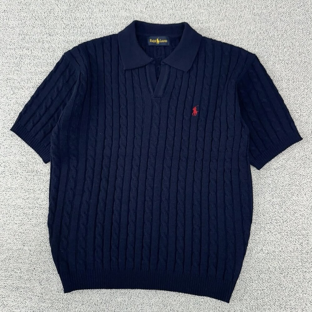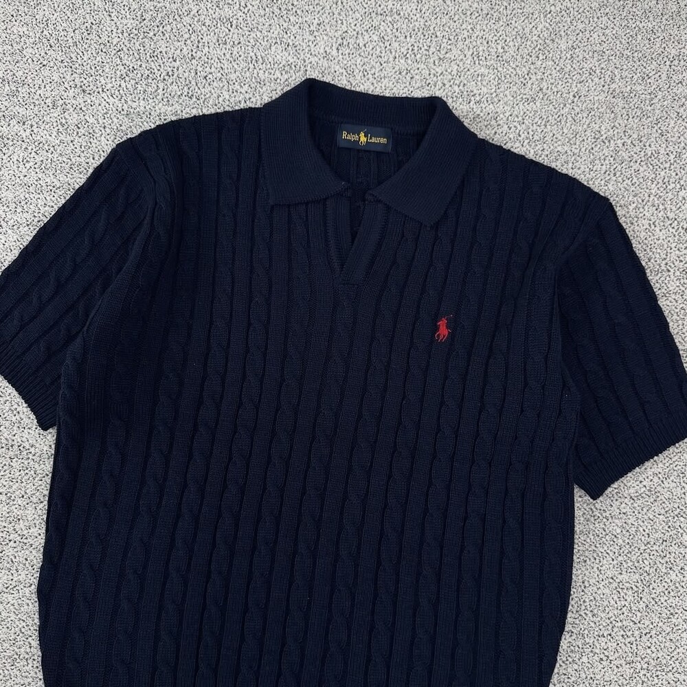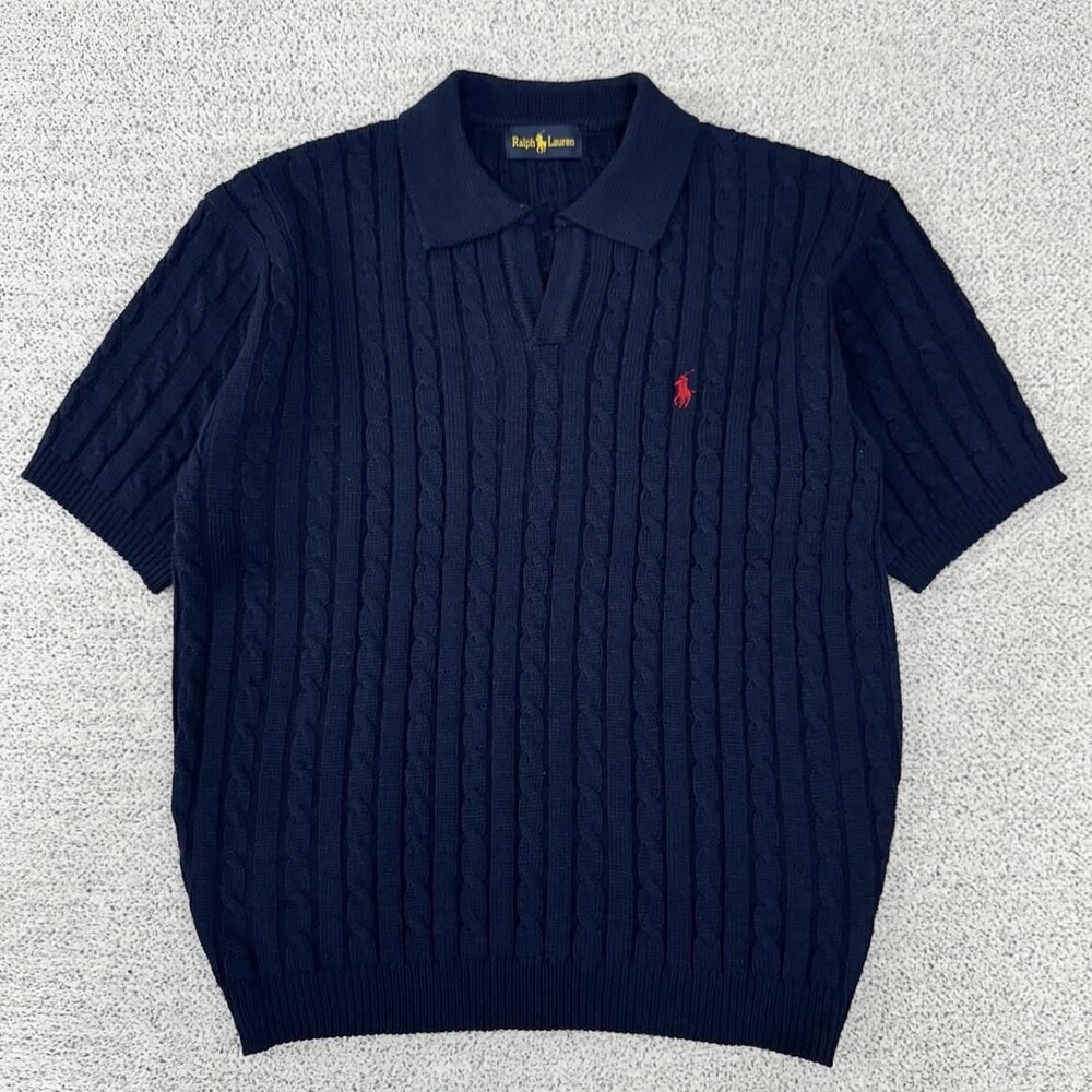 폴로 오픈카라 네이비 케이블 반팔니트