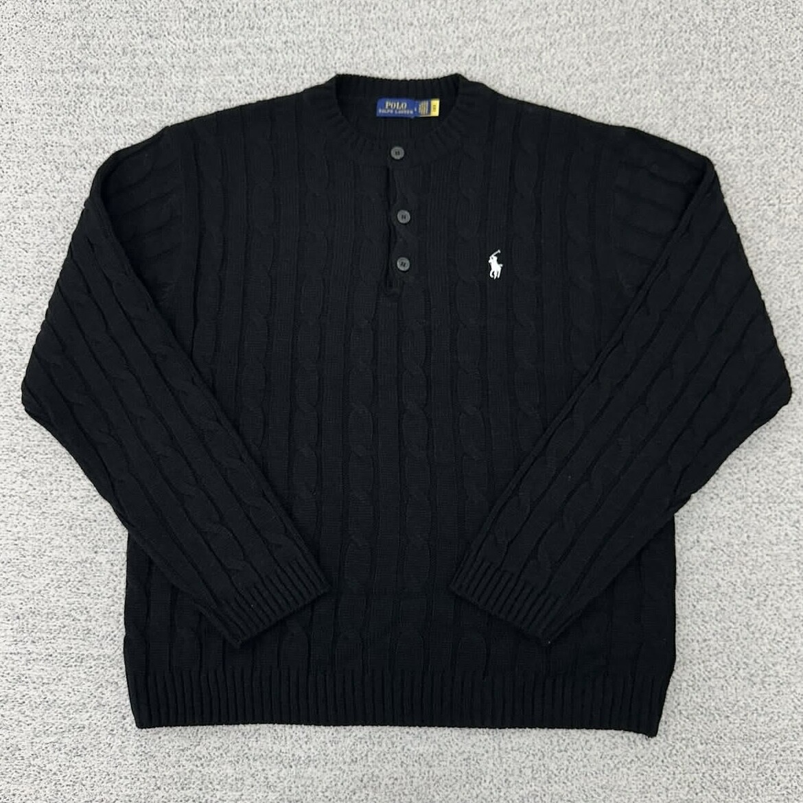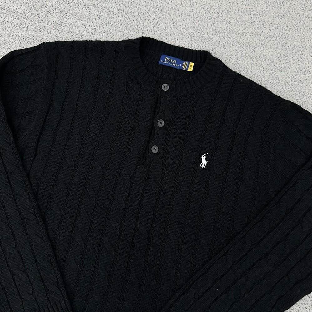 폴로 블랙 케이블 헨리넥 긴팔니트