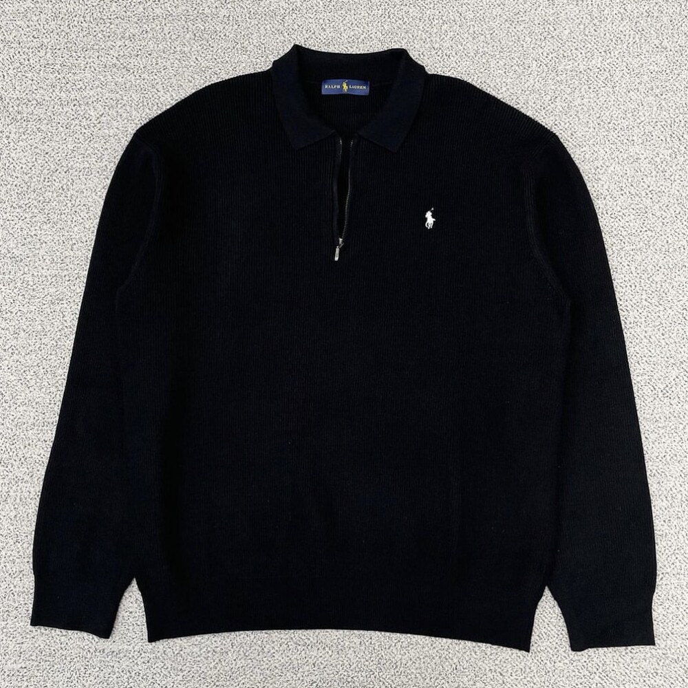 폴로 블랙 카라 반집업 니트