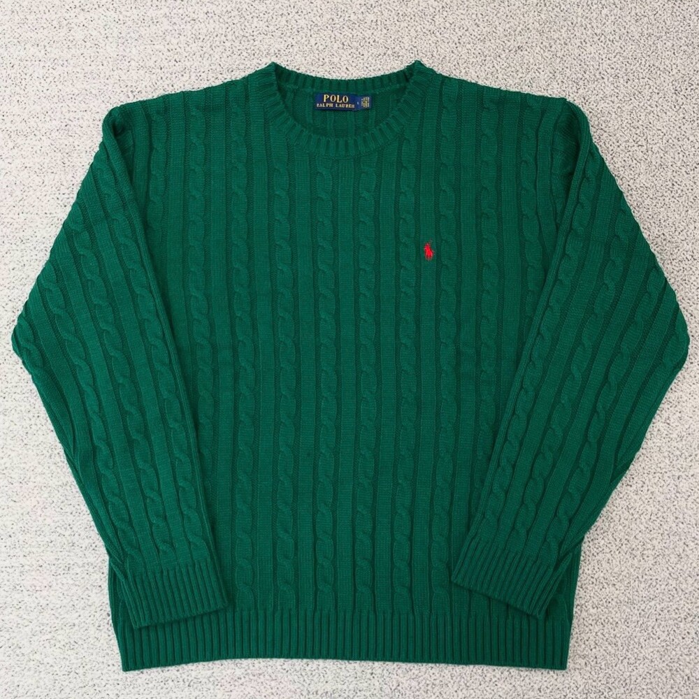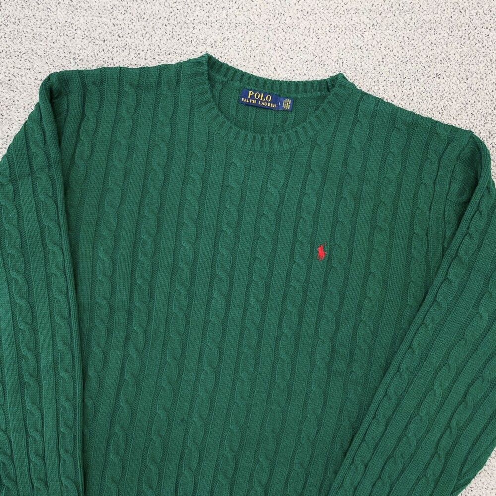 폴로 케이블 라운드 그린 니트