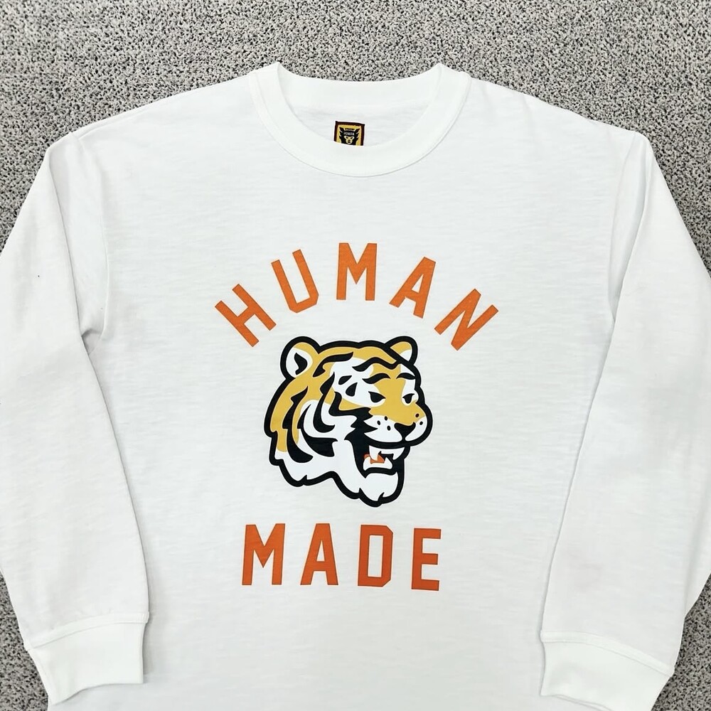 휴먼메이드 타이거로고 화이트 롱슬리브