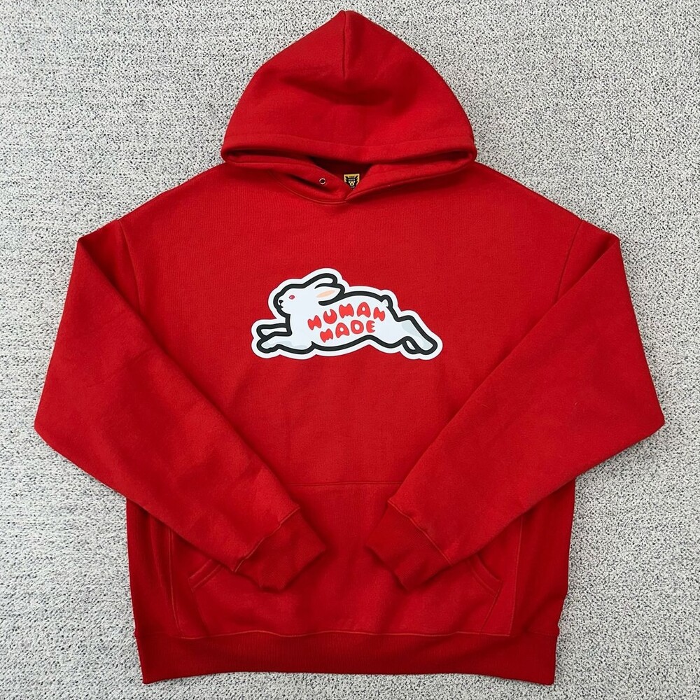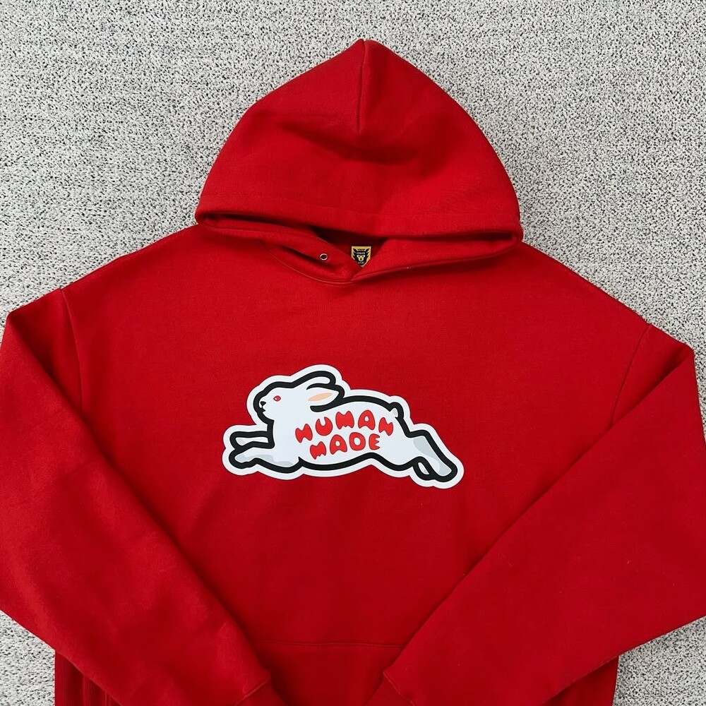 휴먼메이드 토끼 로고 레드 후드