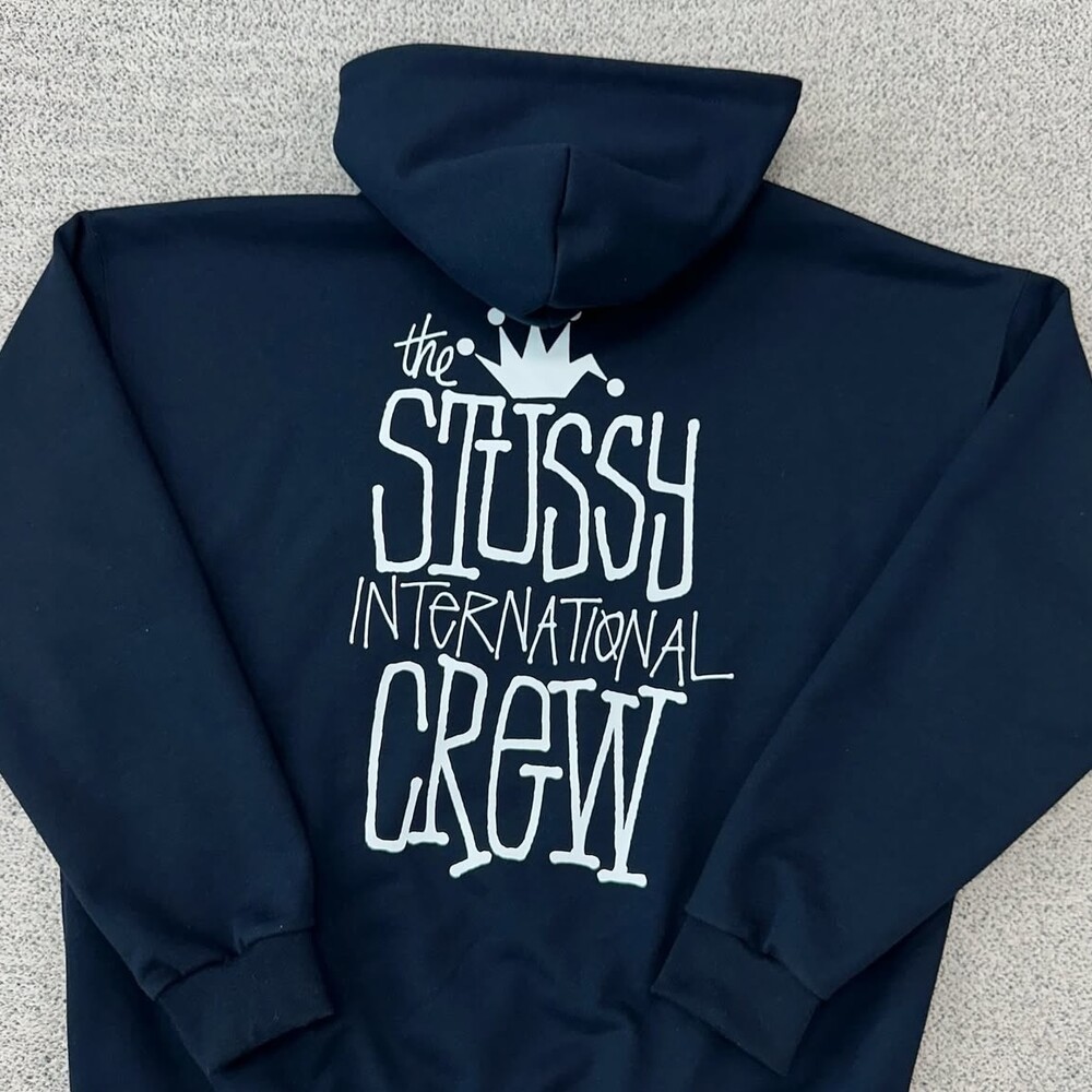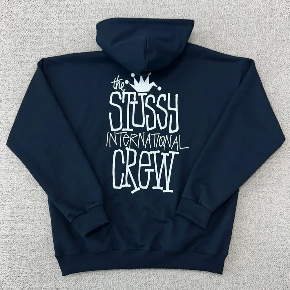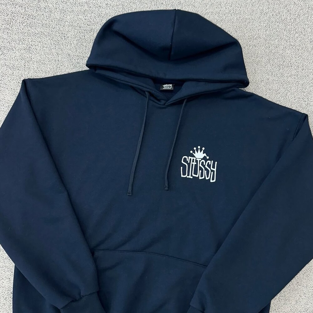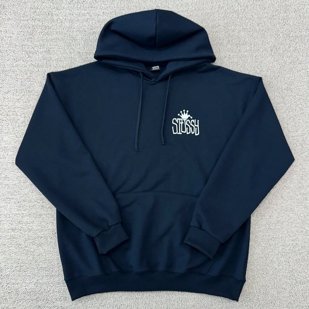 스투시 크라운 네이비 백로고 후드