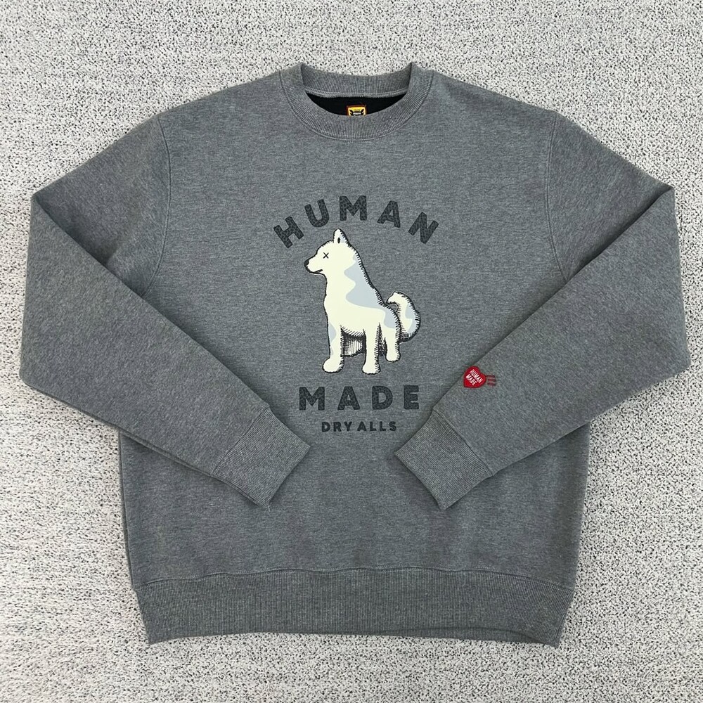 휴먼메이드 카우스 진돗개로고 그레이 맨투맨