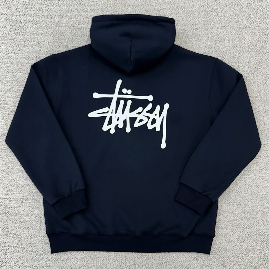 스투시 네이비 백로고 후드