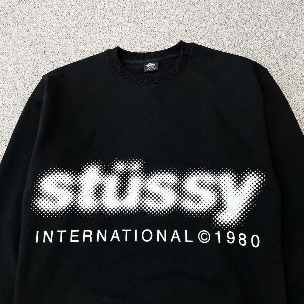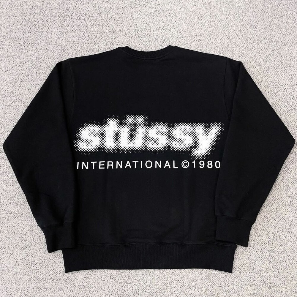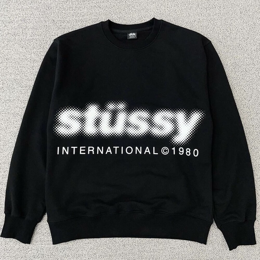 스투시 블러 로고 블랙 맨투맨