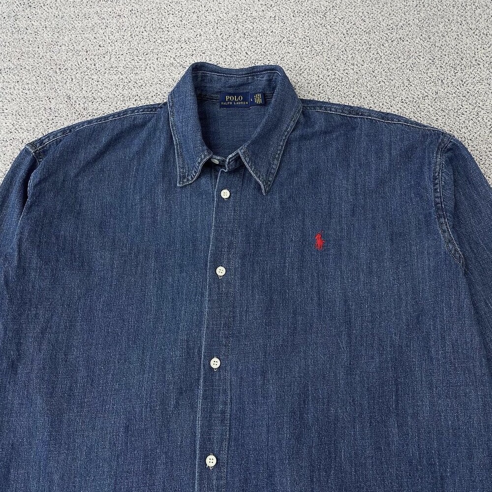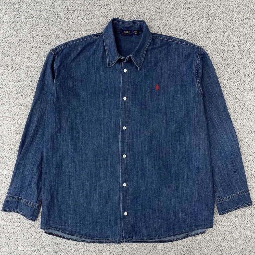 폴로 진청 레드포니 데님 셔츠