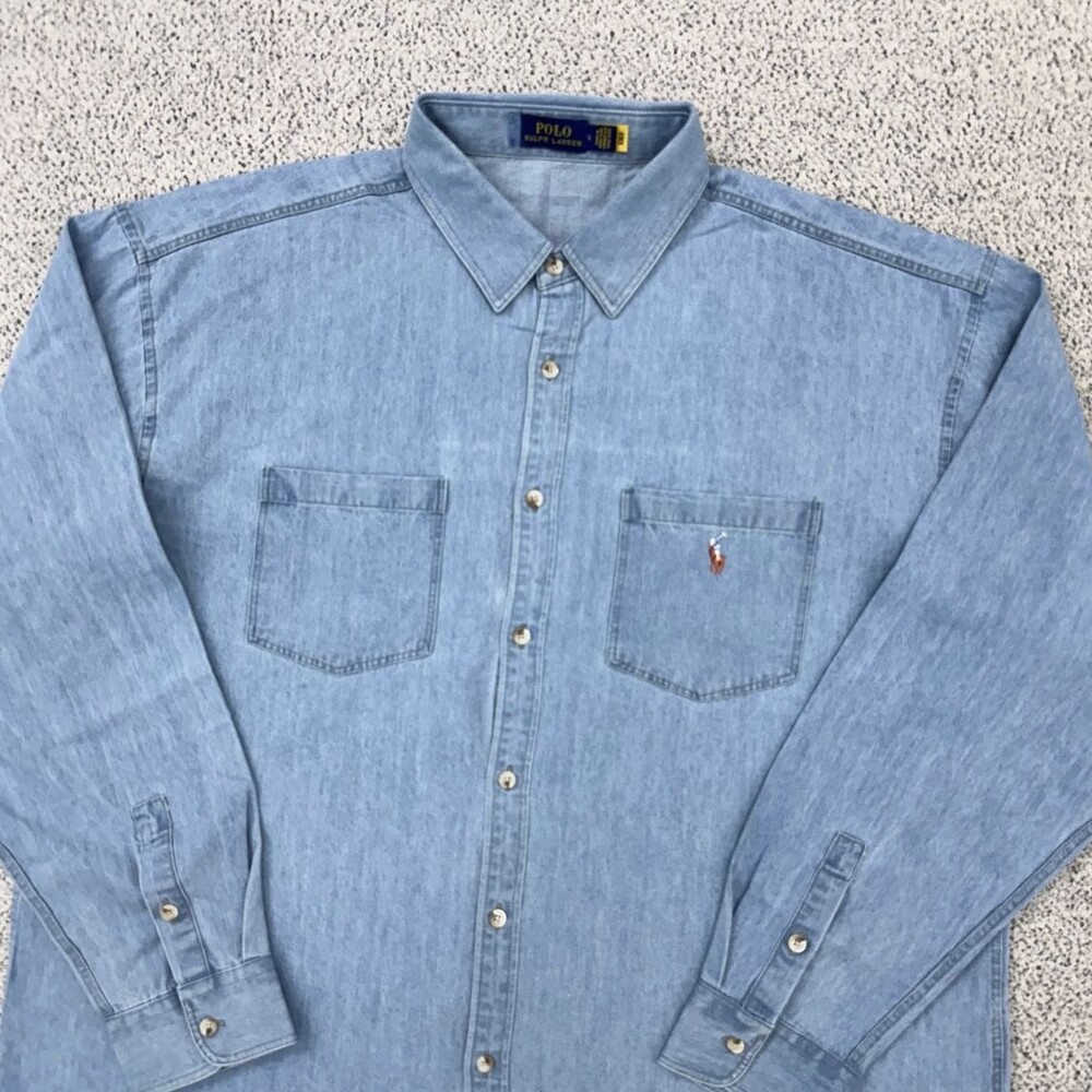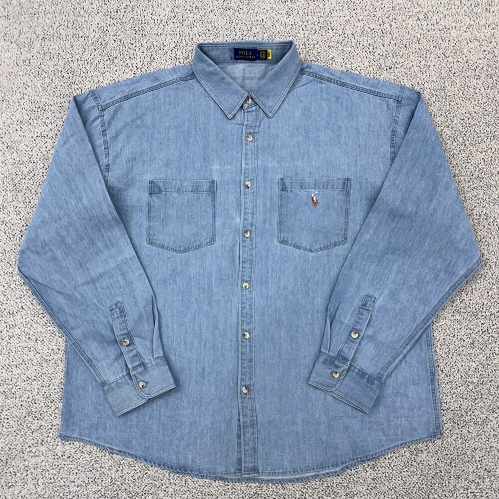 폴로 투포켓 오버핏 연청 데님 셔츠