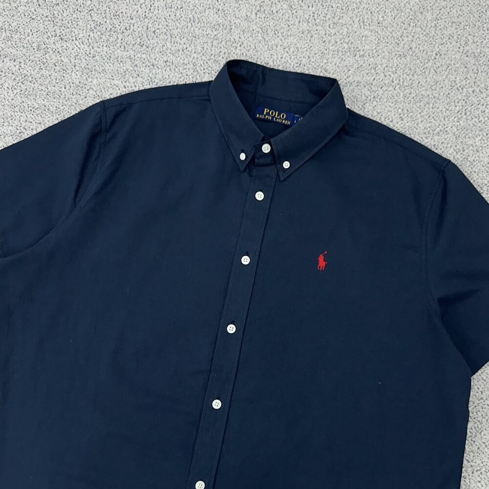 폴로 네이비 린넨 반팔셔츠