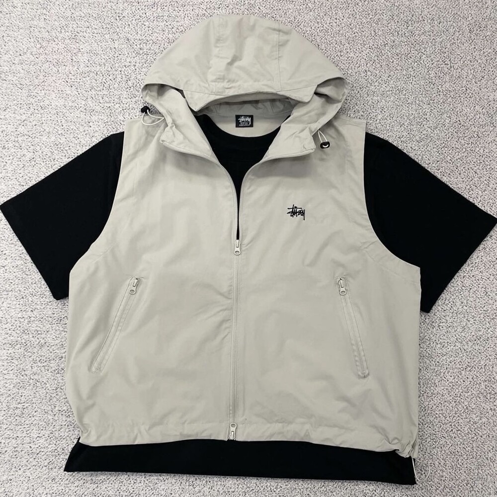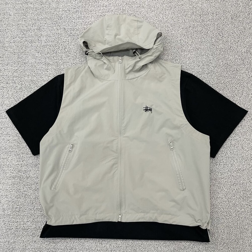 스투시 베이지 후드 윈드 베스트